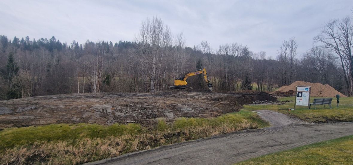 Når vi er ferdige på hull 8, går vi videre til utslagene på hull 3. I mellomtiden vil det bli satt opp provisoriske utslag, og vi vil holde dere løpende oppdatert på fremdriften.